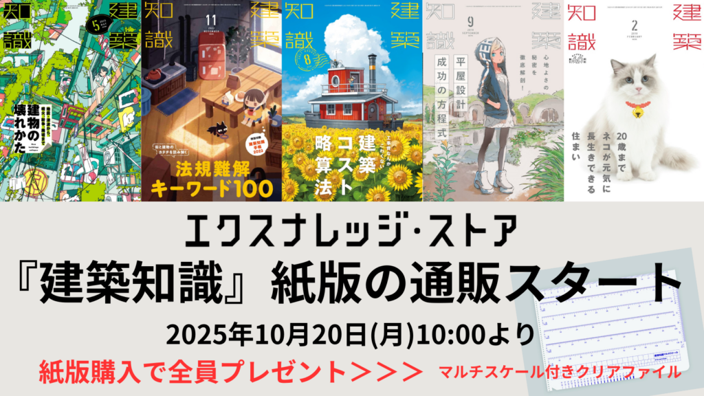 いつもご愛読いただき、誠にありがとうございます。エクスナレッジでは、2024年6月より『建築知識』と『建築知識ビルダーズ』のPDF版を小社通販サイト「エクスナレッジ・ストア」で販売してまいりました。このたび同2誌の紙版を、2025年10月20日(月)10:00より販売をスタートします。