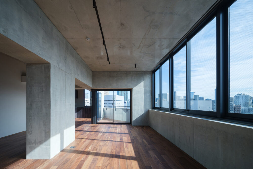 このように都市のありふれた素材を積極的に生かす姿勢は、設計者の自己表現を超えて、街との関係性を編み直すデザインアプローチといえます。一方、都心で中高層の集合住宅を計画する場合、RCラーメン構造が主流となりますが、その際には塔状比の関係で800㎜角ほどの大きな柱や梁が必要となるので、間取りや家具配置の制約につながりやすくなります。これをマイナス要因とせずに積極的に取り込んだ事例も多いです。