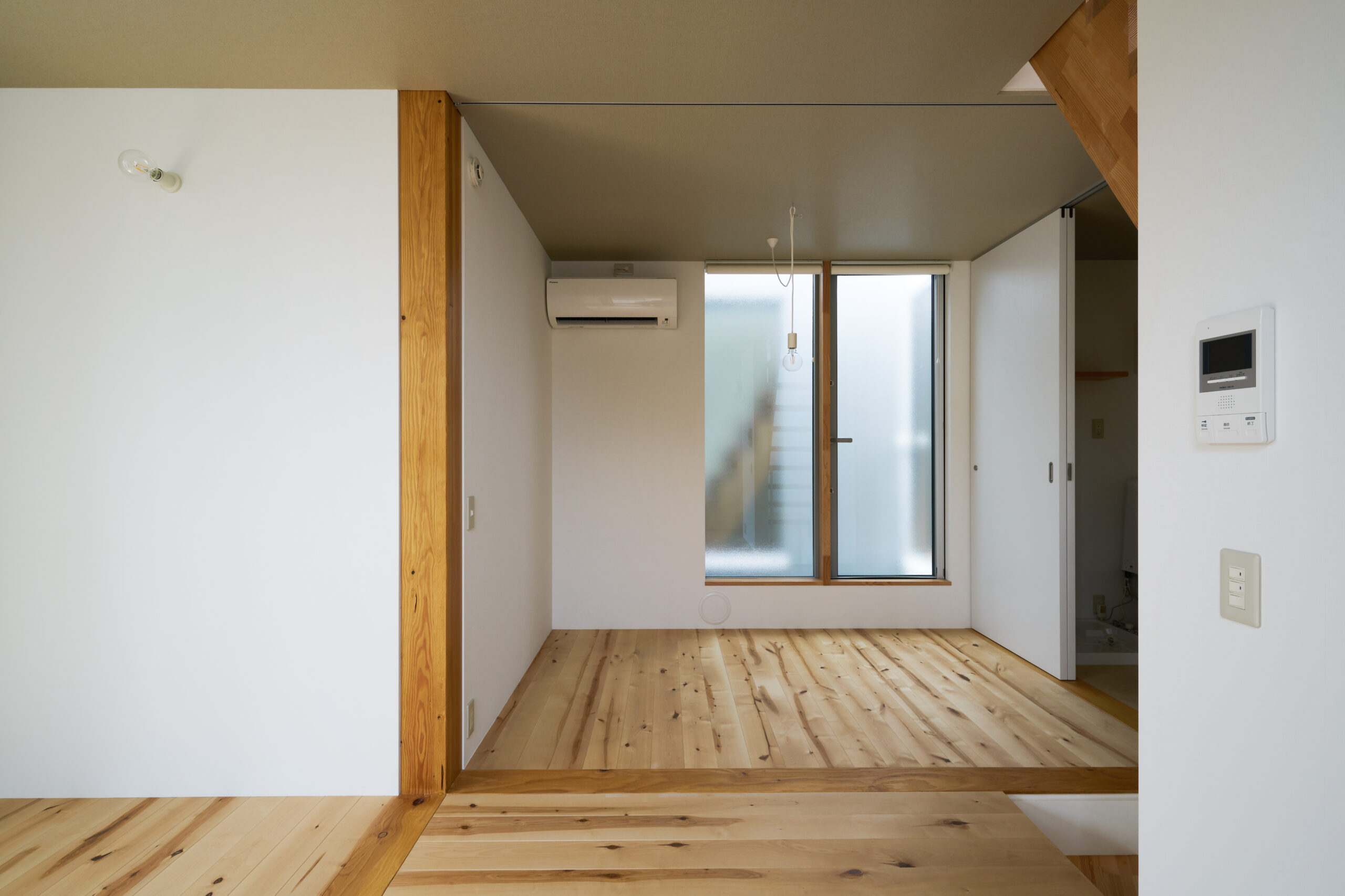 この姿勢は、木造の長屋「ニシオギソウ」(2018年)[D]にも見て取れます。わずか20〜30㎡という狭小空間で、いかに自由度を与えられるかが命題であった本建物では、3畳や4畳半の小さな部屋を組み合わせ、単調な構成を避けながら、住まい手が自ら居場所を選べる設計としました。ペンダントライトのコードも長めに設定することで、照明の位置を自在に調整できるようにし、住まい手が自分なりの暮らし方を構築できる余地を残しています。
