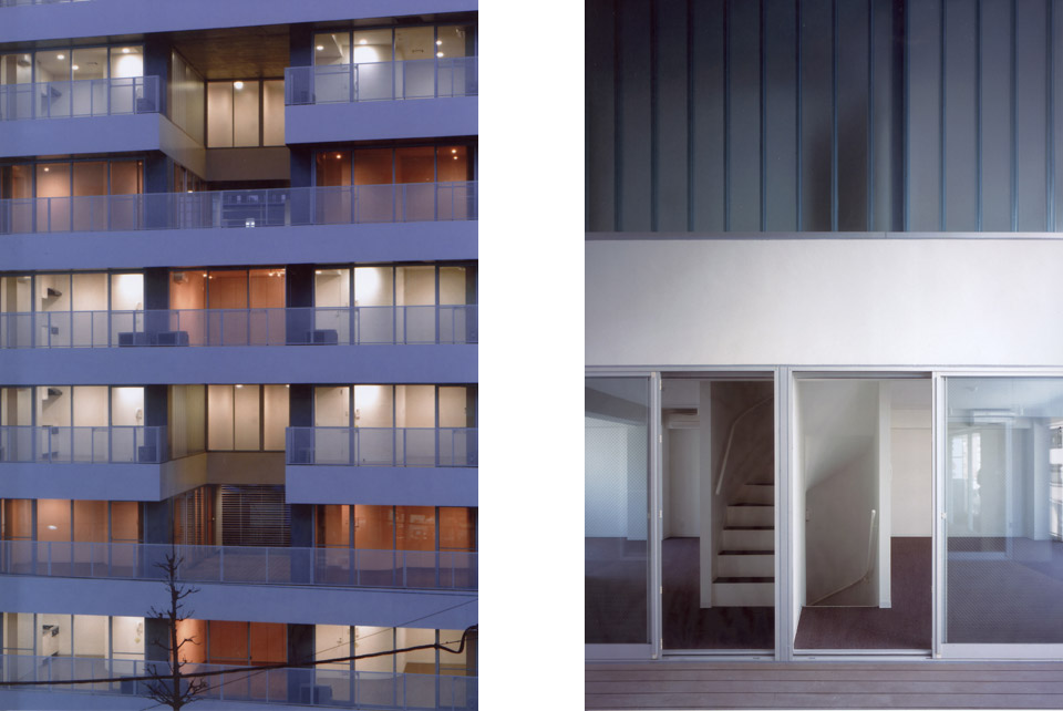 「私が集合住宅の部屋を設計するうえで目的にしているのは、空間の特徴と魅力をつくること。空間の使い方を規定しすぎず、自由の余地を残すようにしています。その重要性に気づかされたのが、『FH協和スクエア』(2002年)[D]でした。SOHOを想定したメゾネット型の集合住宅で、当初は明るい階をオフィス、暗い階を住宅と想定して設計しました。しかし実際には、それらを逆に使う住まい手がいて、とても生き生きとしていました。そのとき、建築空間が備えるべき本質に気づかされたのです」(伊藤氏)。