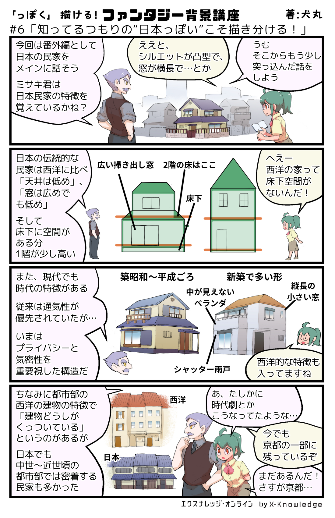 この連載では主に「西洋の建物の形」の描き方を紹介していますが、今回は番外編で「日本の家」を中心に、西洋との違いを含めて解説していきます。