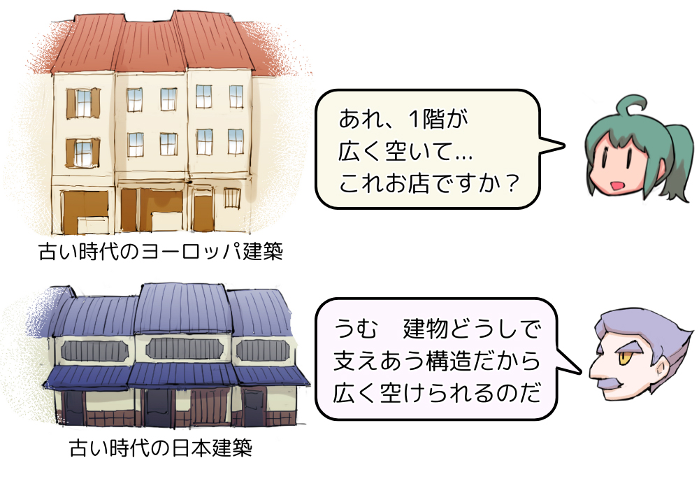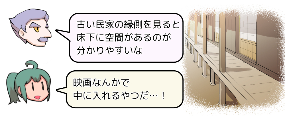 実はこのように床を地面から離して「床下空間」をつくるのは、湿気の多い日本(アジア)的な構造です。