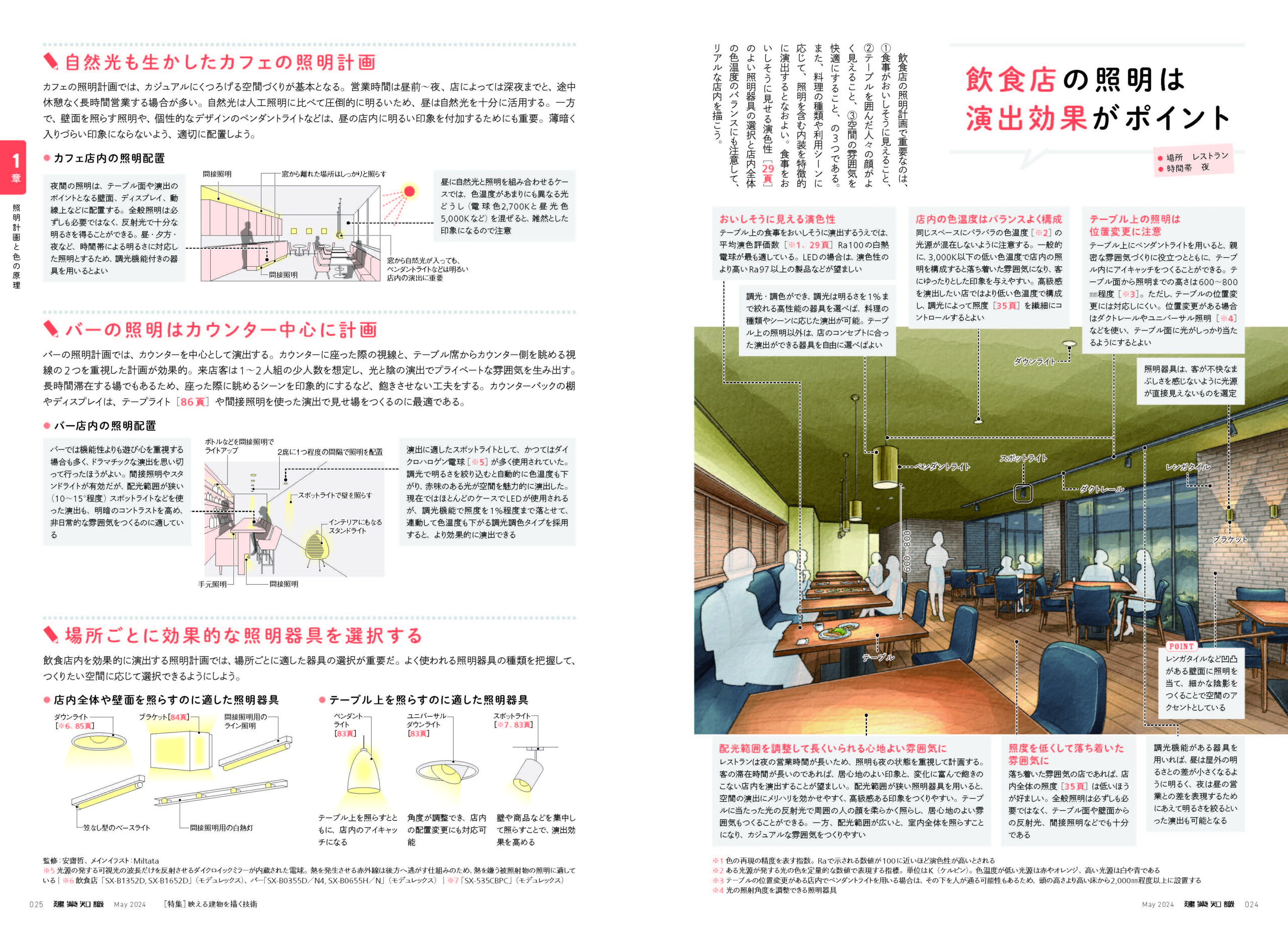 住宅や商業施設において照明や窓はどのような位置にどのような理由で配置されているのか、光はどこから射し込んでどのように広がるのか、そんな光の建築の関係を丁寧に解説する特集です。