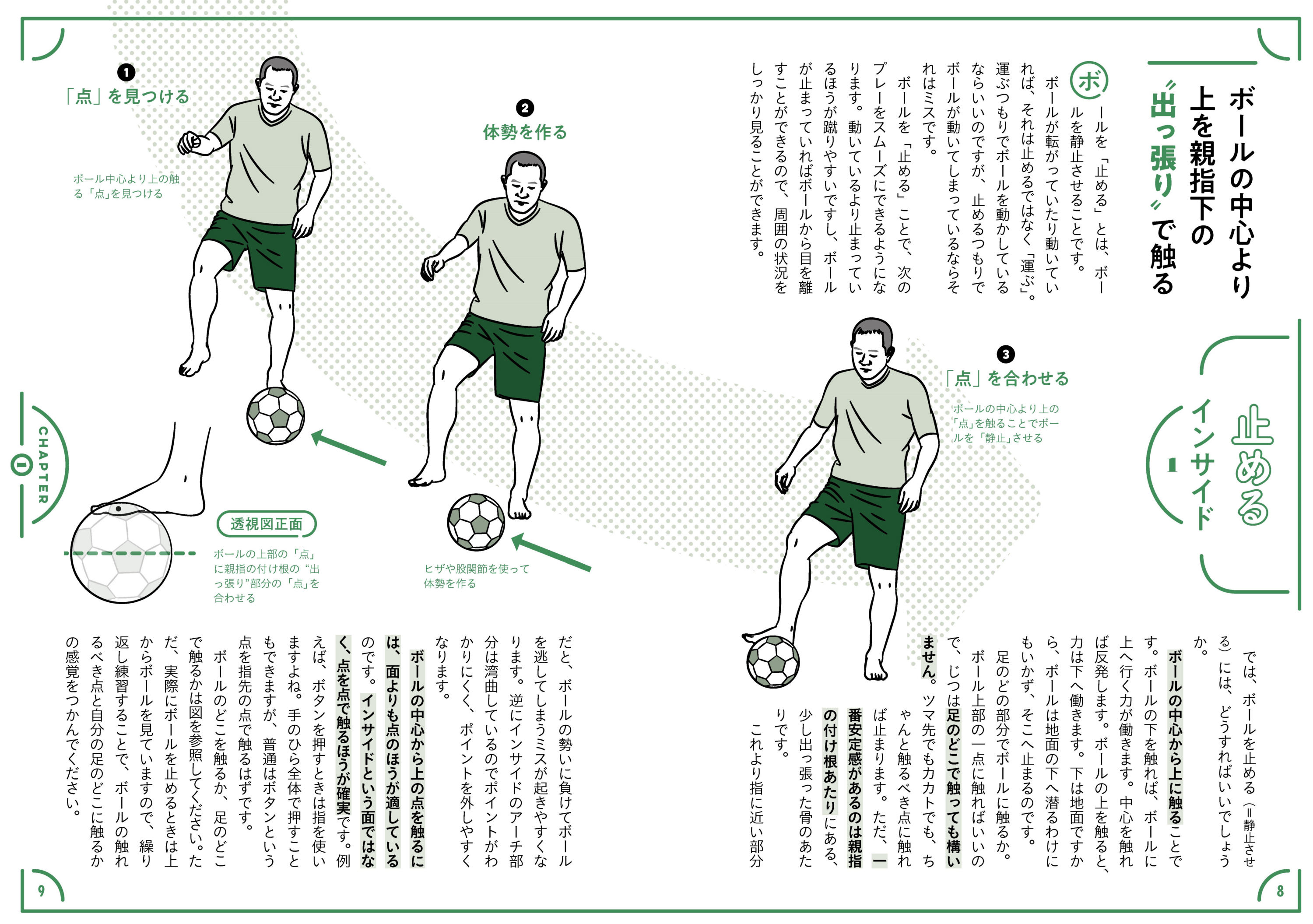 三笘薫選手と『サッカードリブル解剖図鑑』を制作しているときに三笘選手の映像をたくさん見ましたが、ドリブルだけでなく止める技術も一級品でした。プレミアリーグでもとても速くて処理が難しいボールでもピタリと止めて惚れ惚れします。