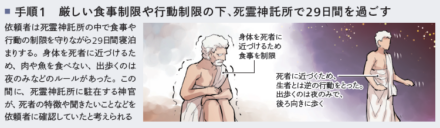 死霊と会話したい者は、死霊神託所を訪れる必要がありました。古代ギリシアでは公認された死霊神託所が存在し、国家に認められた魔術師が活動していました。死霊神託所で死者に会うためには、手順通りの行動を行う必要がありました。