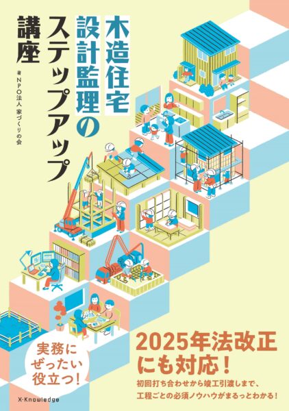 設計編では、初回打ち合わせ・契約前といったフェーズごとに「何を考え、何を確認し、どう判断するか」を細かく整理。契約、プラン提案、図面作成のポイントまで、住宅設計者たちがイラストや図を交えながらわかりやすく解説しています。さらに、2025年の建築基準法改正にも対応。法改正の要点をはじめ、構造の考え方や申請図書のポイントまで、実務に直結する最新情報をしっかり掲載しています。