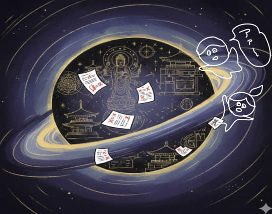 「アカン、戻れへん」仏教世界の深淵に吸い込まれていく編集担当たち(イメージ図)