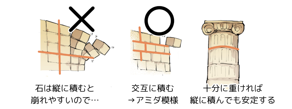 石は「重く弾力性がなく、塊で使いやすい」ため、交互の「アミダ状」に積むのが安定した形になります。