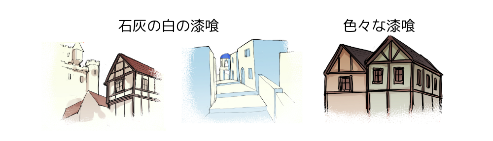 実際には、ヨーロッパでも白以外の漆喰は多く使われますが、地中海の建築など、白が基調になっている地域もあります。