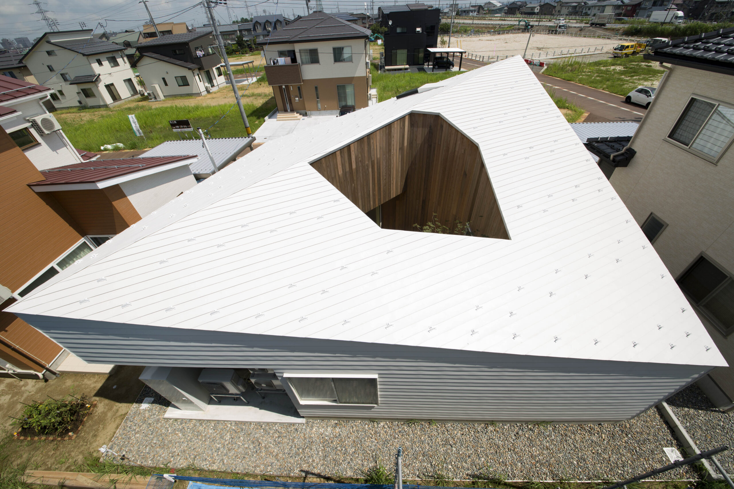 屋根面が強固になれば、最上階の内部耐力壁や柱を大幅に減らすことが可能になります。これにより、構造が整理されるだけでなく、結果的に基礎形状もシンプルになり、コストダウンにもつながります。