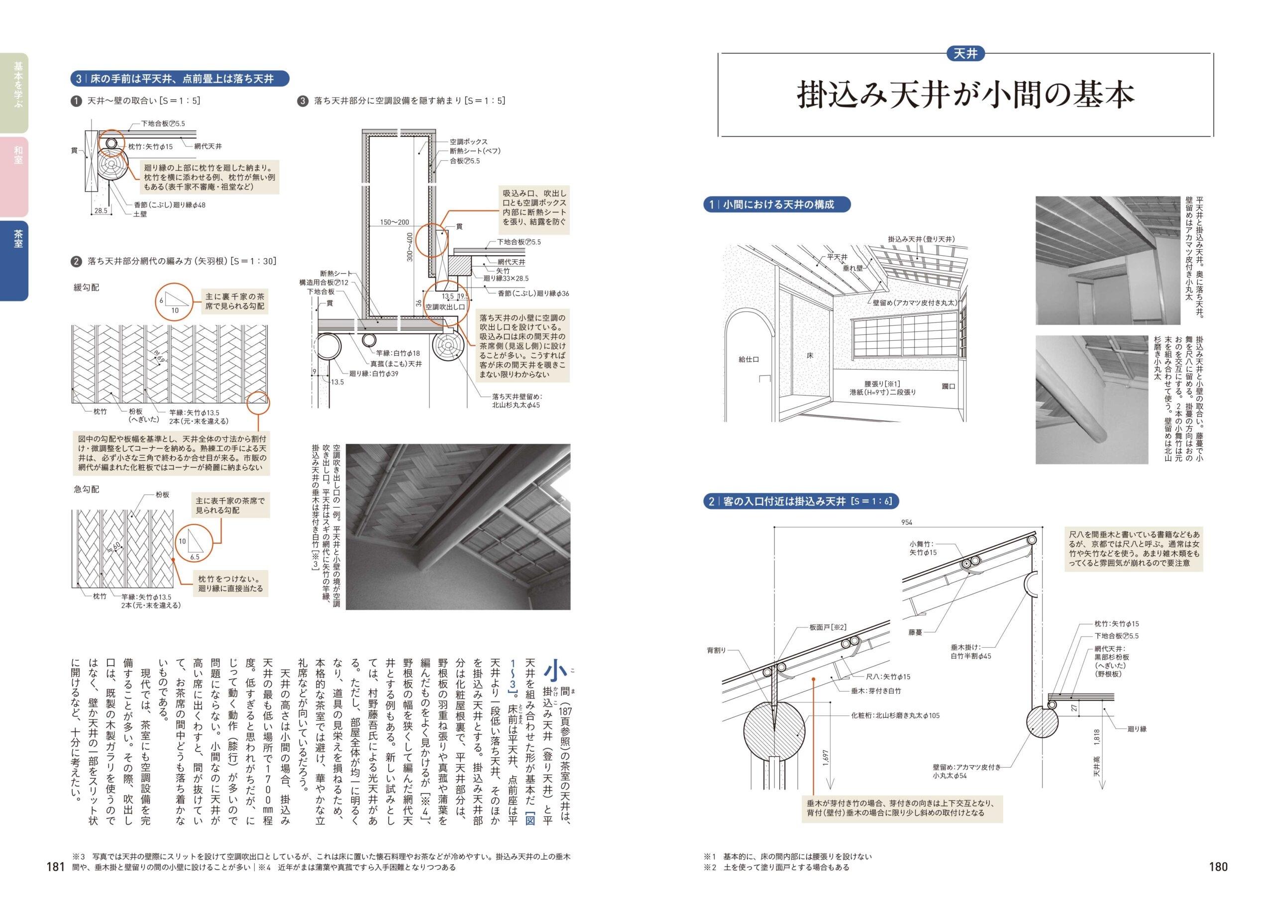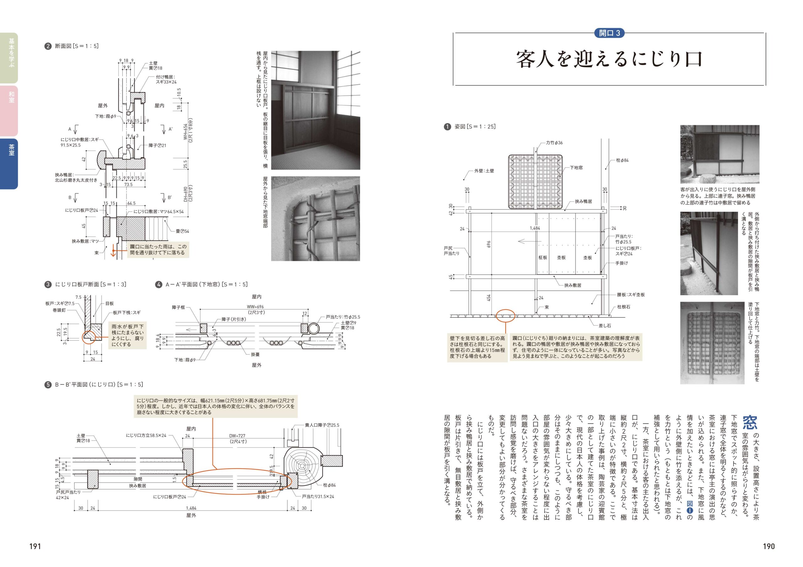 部材名称、演出方法、ディテールにこだわるべき意匠のポイントだけでなく、快適に使用するための空調や建具の設計など、美しい茶室を設計するためのテクニックが詰まっています。