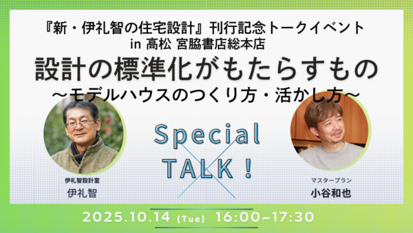 【書店イベント】伊礼智×小谷和也 ―設計の標準化がもたらすもの― 10月14日16:00 宮脇書店総本店 in 高松