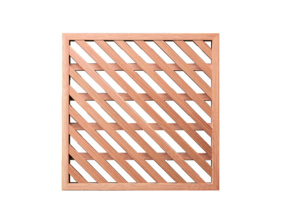 大建工業が得意とする国産スギの積層板を加工し、音を効果的に〝拡散〞できる内装パネル「リブトーン」。木材(角材)の間隔と角度を変えたパネルを2段重ねにし、室内の反響音をさまざまな方向に分散させます。