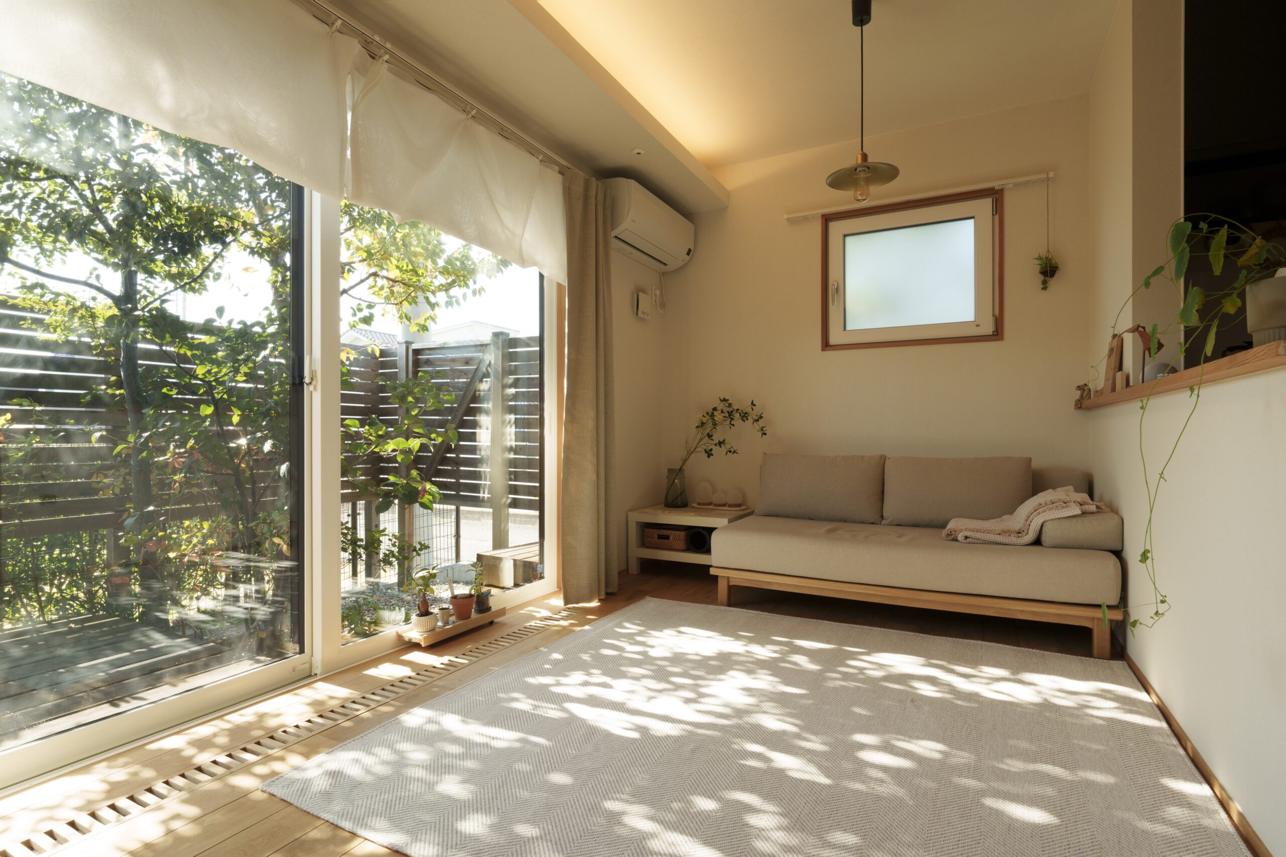 「弐番町アパートメント」の101号室。断熱・気密、遮音性能に優れており、交通量の多い道路からの音や隣家の音に悩まされることなく、寒い時期には暖かな日差しを採り入れながら、快適に一日を過ごすことができる。入居者の満足度は高く、空室もすぐに埋まる